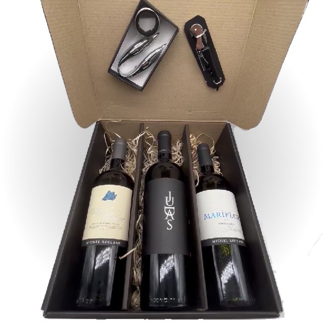 La box consiste en tres botellas de vino alta gama Premiun: